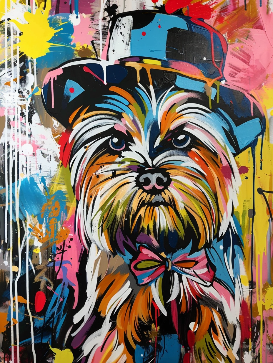 Colorful space Yorkshire Terrier dog with a hat Expressive surreal Poster # F025452