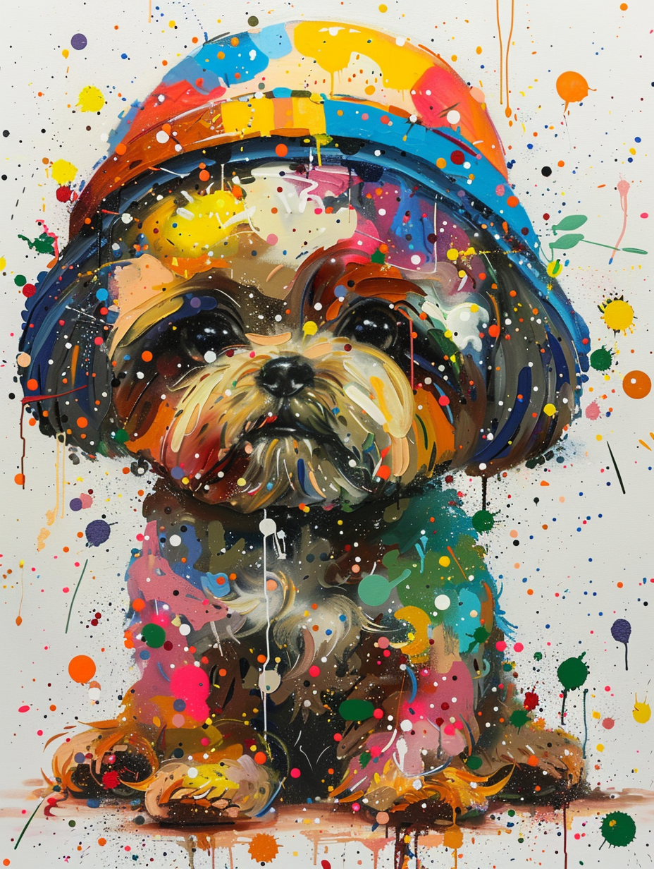 Colorful space Shih Tzu dog with a hat Expressive surreal Poster # F025461