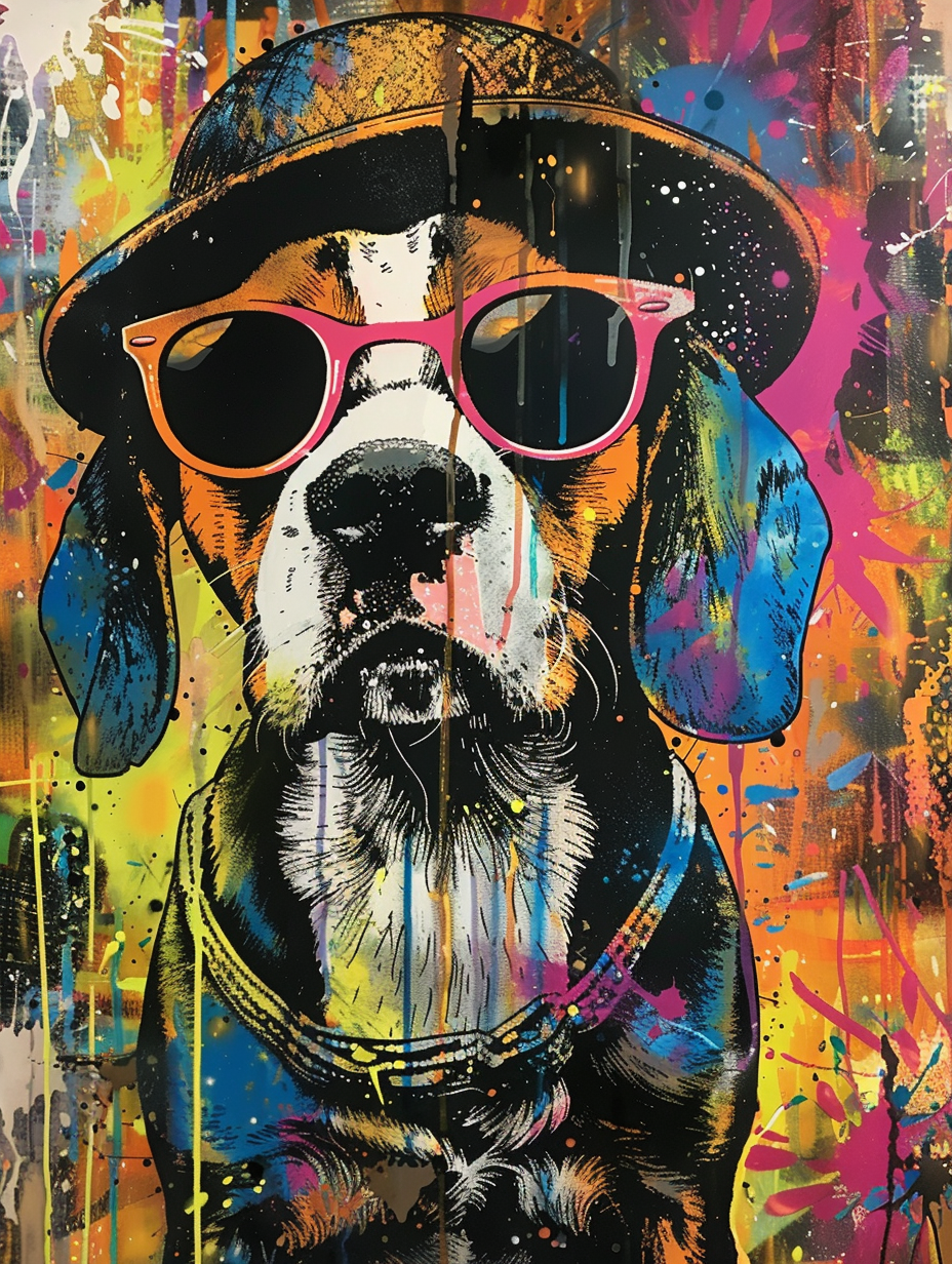 colorful space Beagle dog with a hat Expressive surreal Poster # F025581