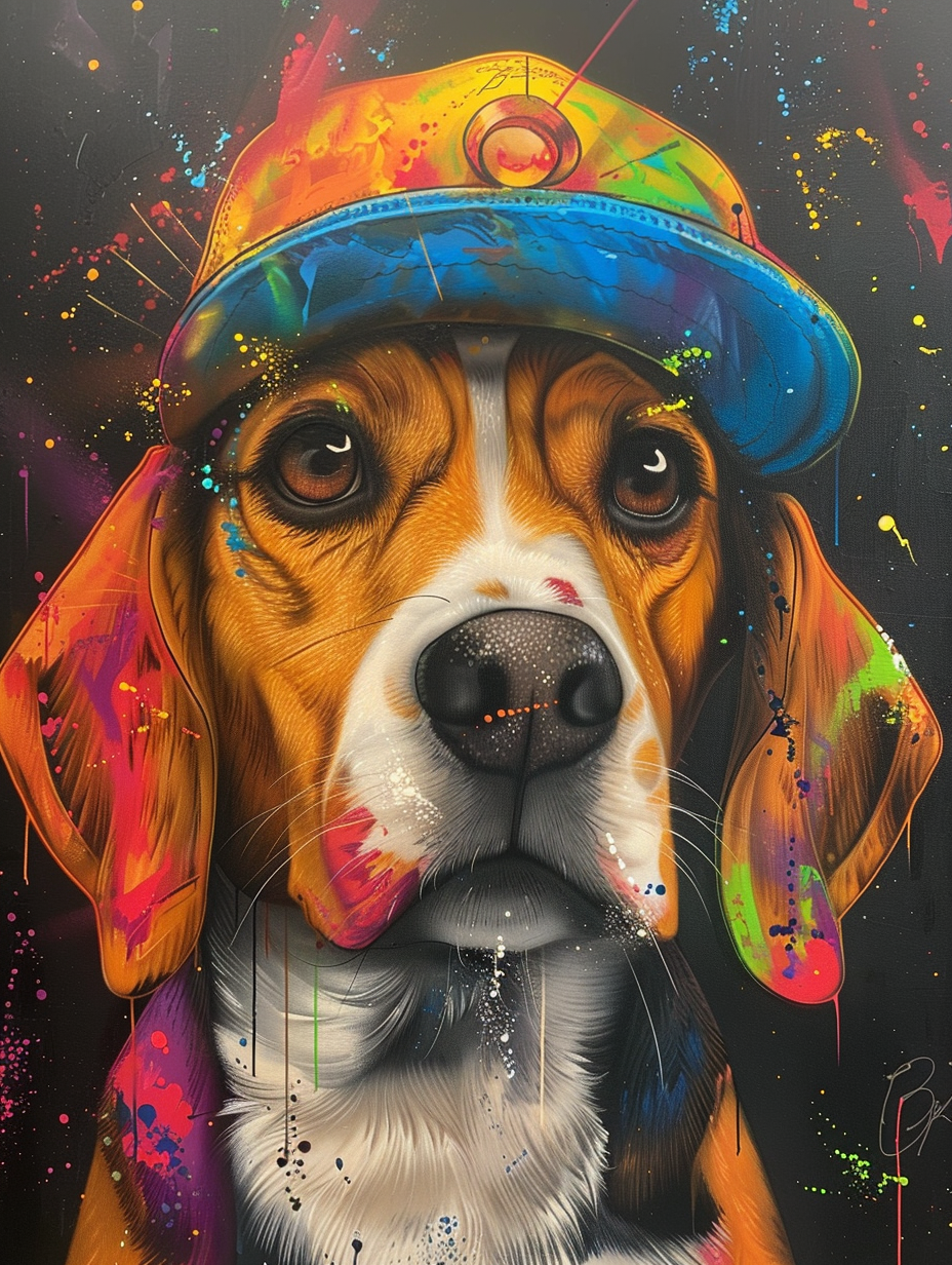colorful space Beagle dog with a hat Expressive surreal Poster # F025636