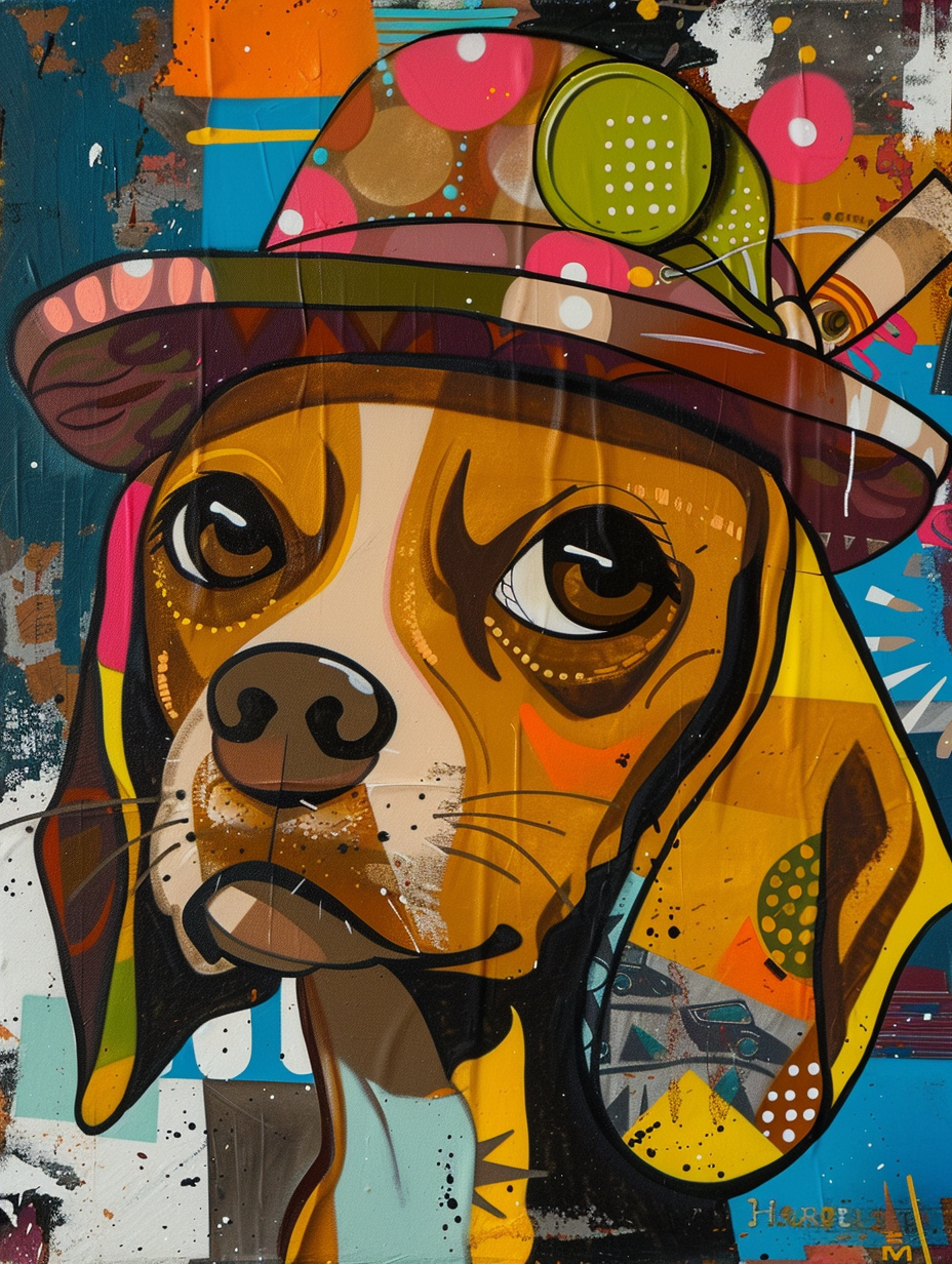 colorful space Beagle dog with a hat Expressive surreal Poster # F025650